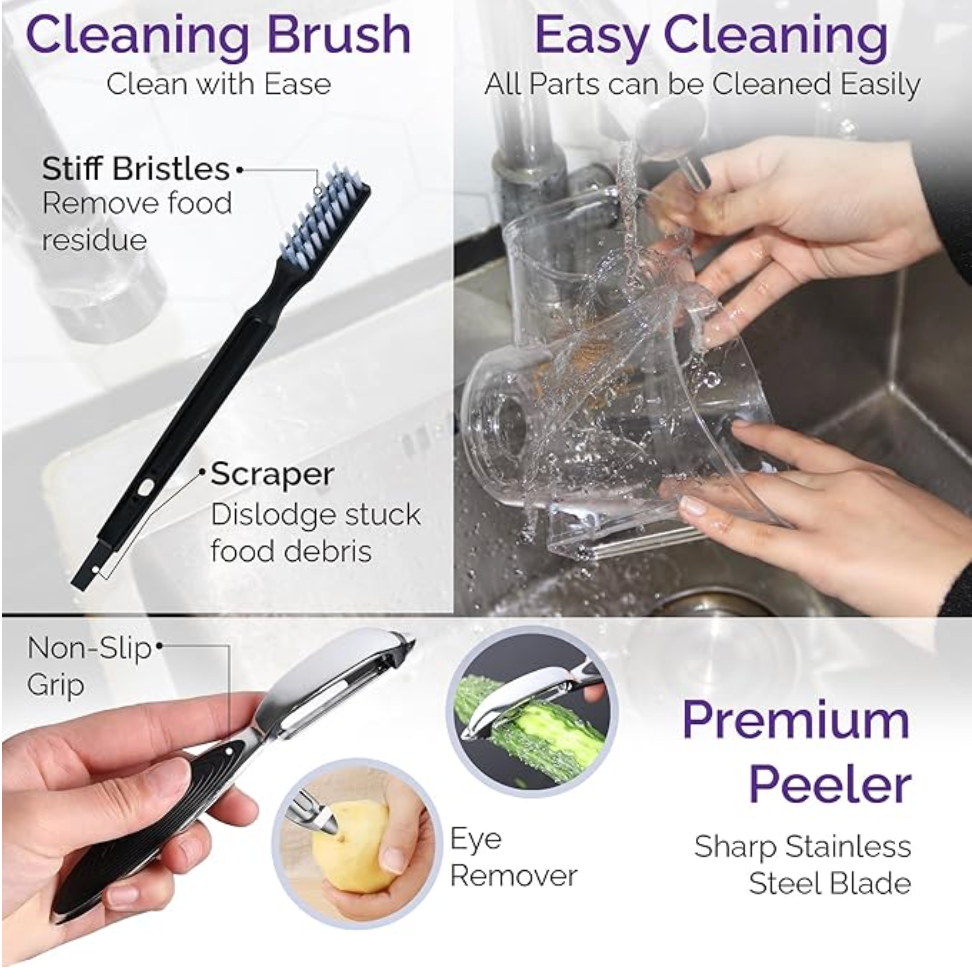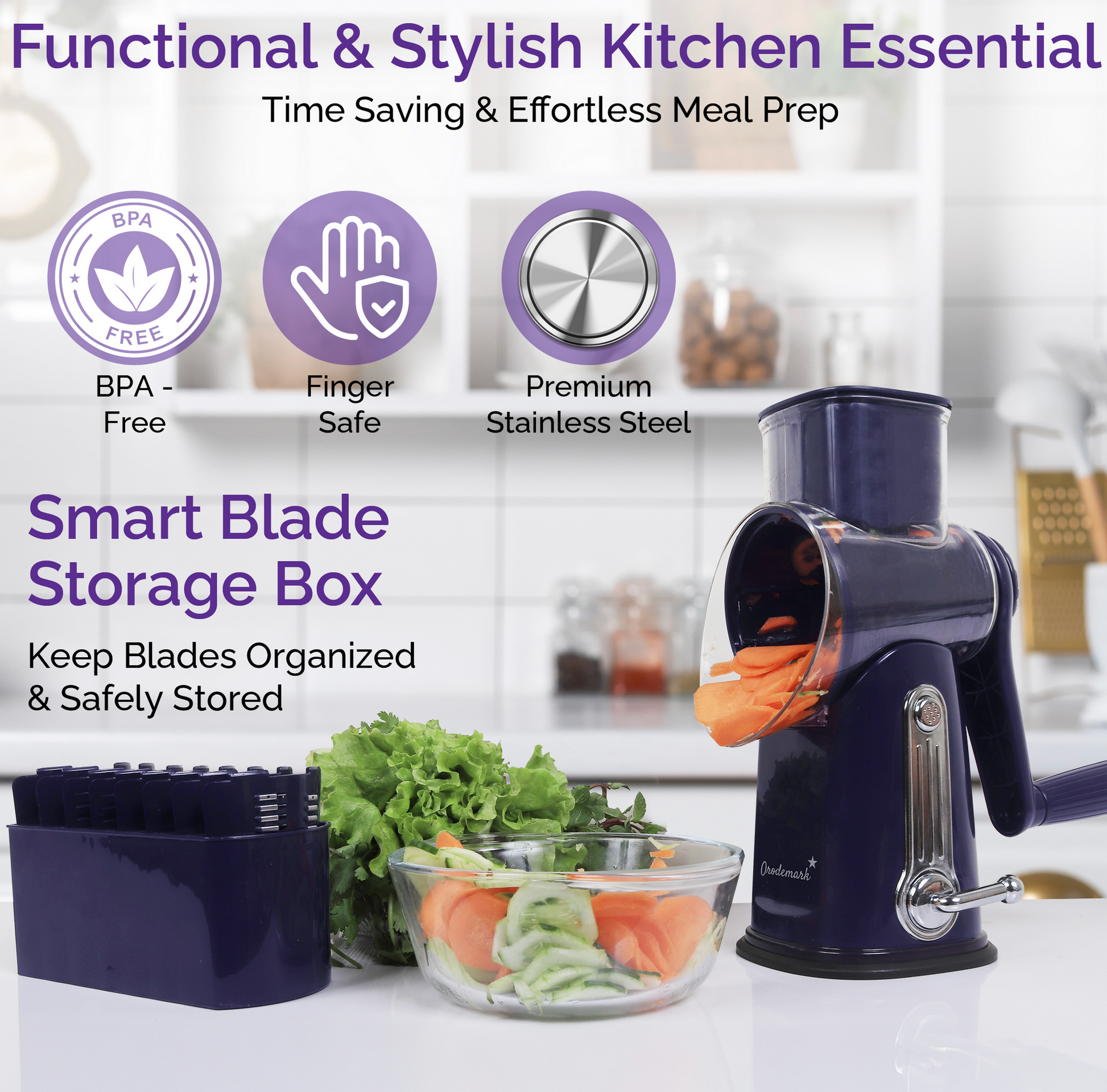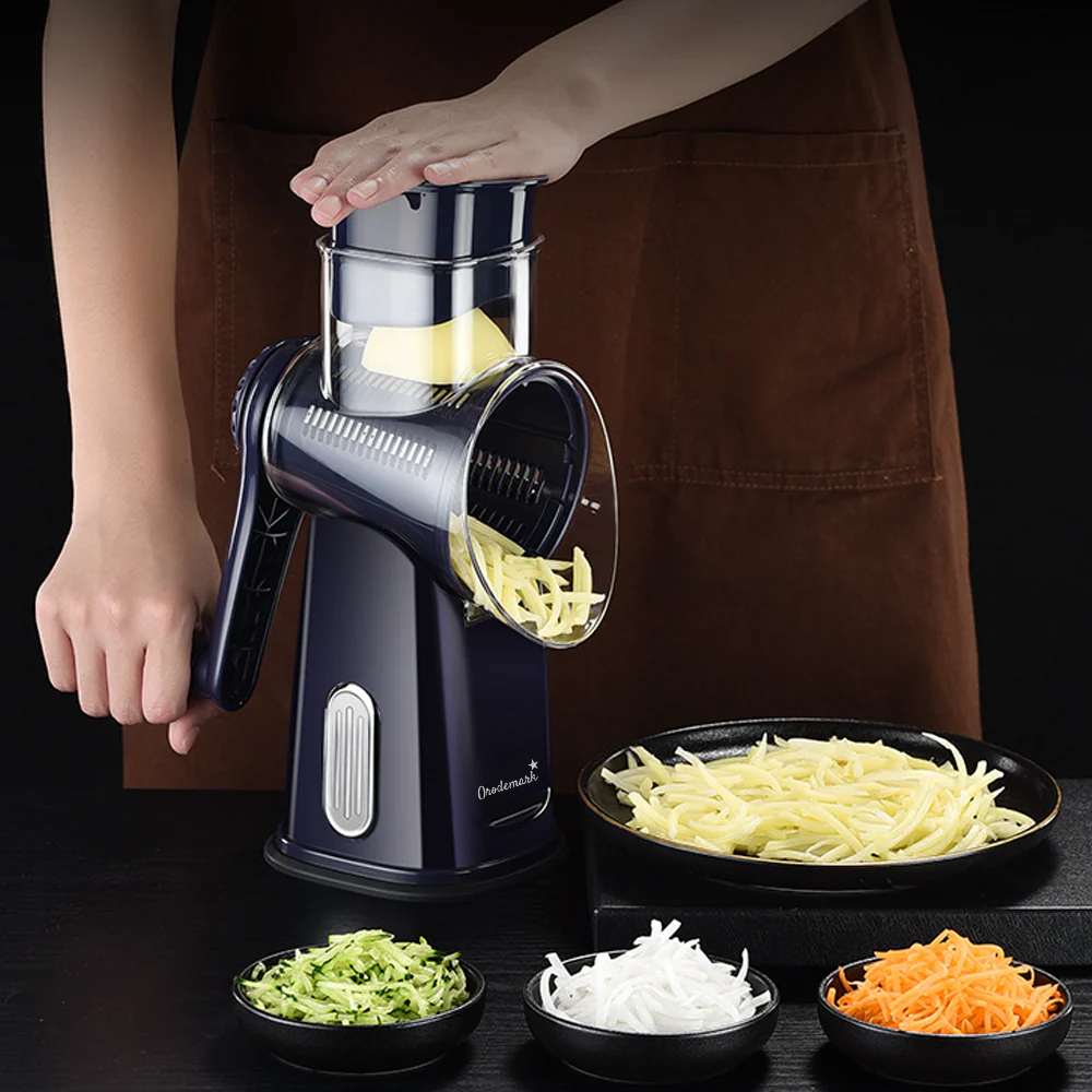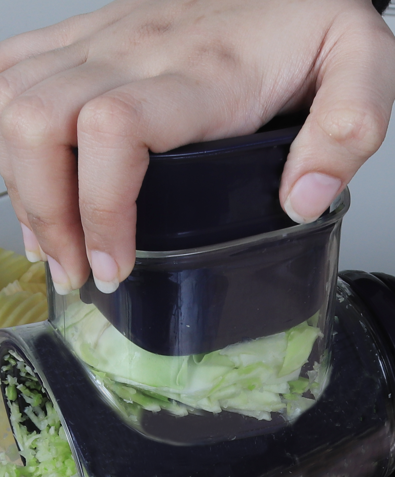 Ditch the clutter and messy prep. This all-in-one slicer makes shredding, grating, and slicing effortless — so you prep like a pro in no time.